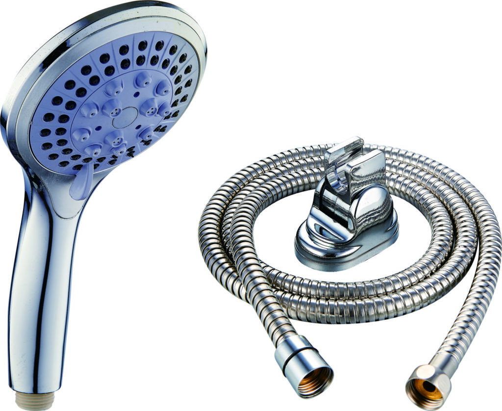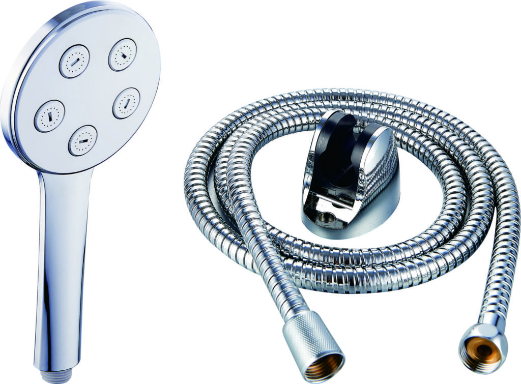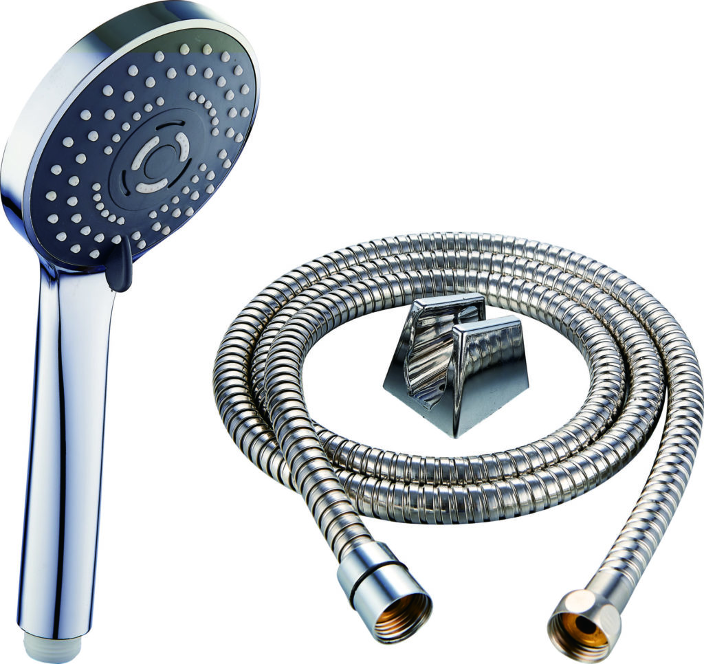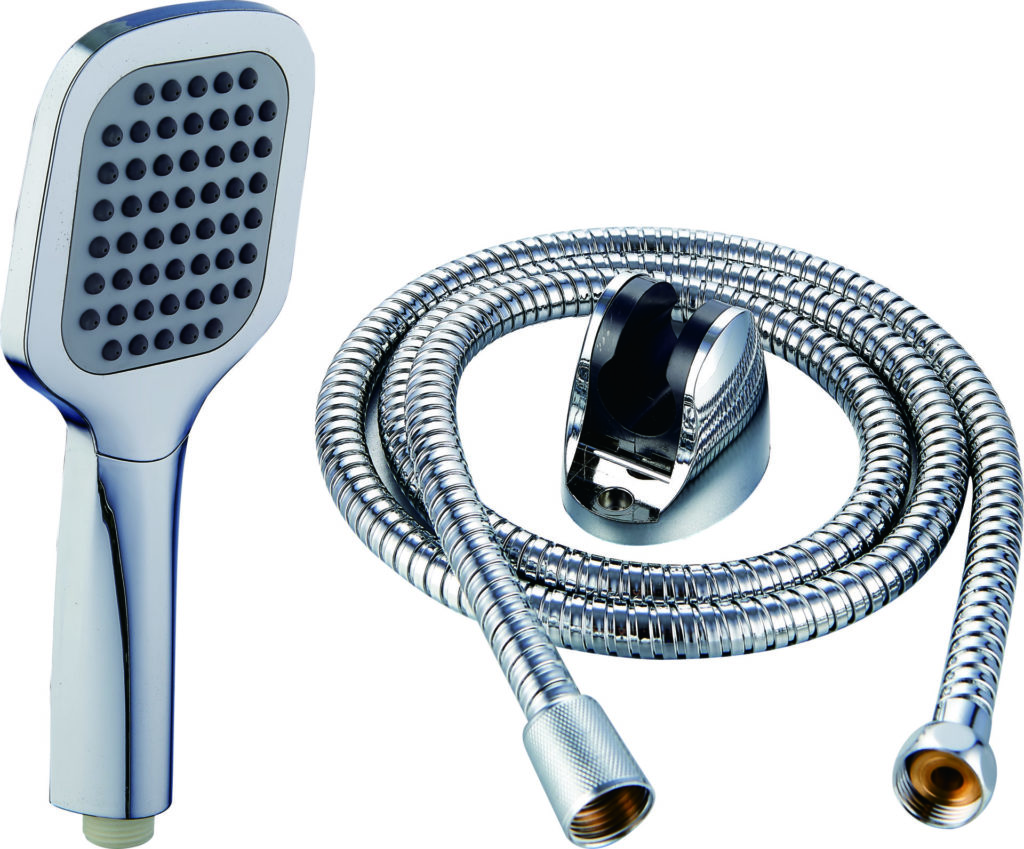 Set complet de douche chrome (pommeau, flexible, support) (REF SH081)