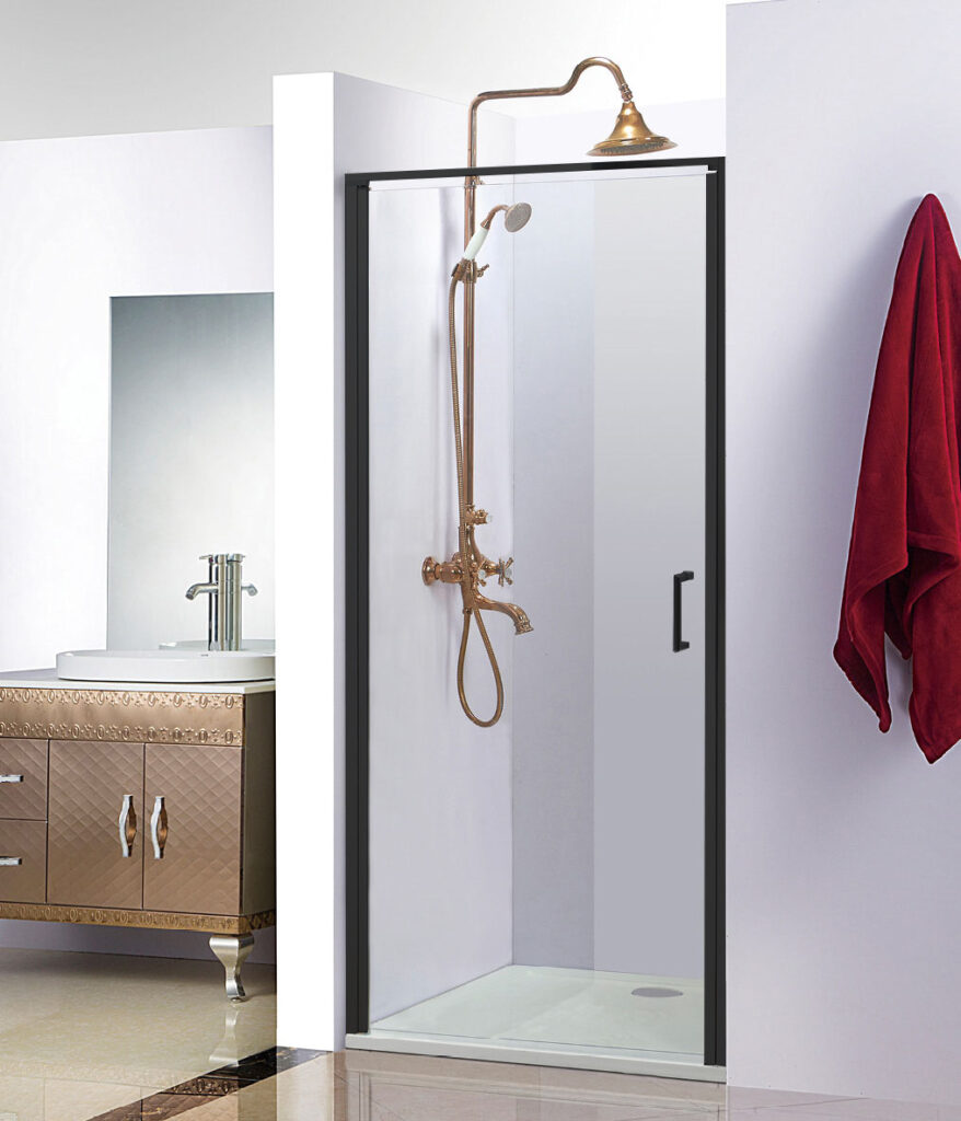 Porte de douche coulissante noire avec paroi fixe 8 mm - REF S730-160 BLACK• Dimensions: 90X160X195 CM • Avec verre trempé de 8 mm d’épaisseur