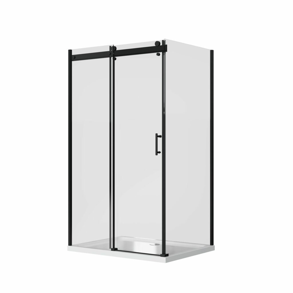 Porte de douche coulissante noire avec paroi fixe 8 mm - REF S730-120 BLACK• Dimensions: 90X120X195 CM • Avec verre trempé de 8 mm d’épaisseur