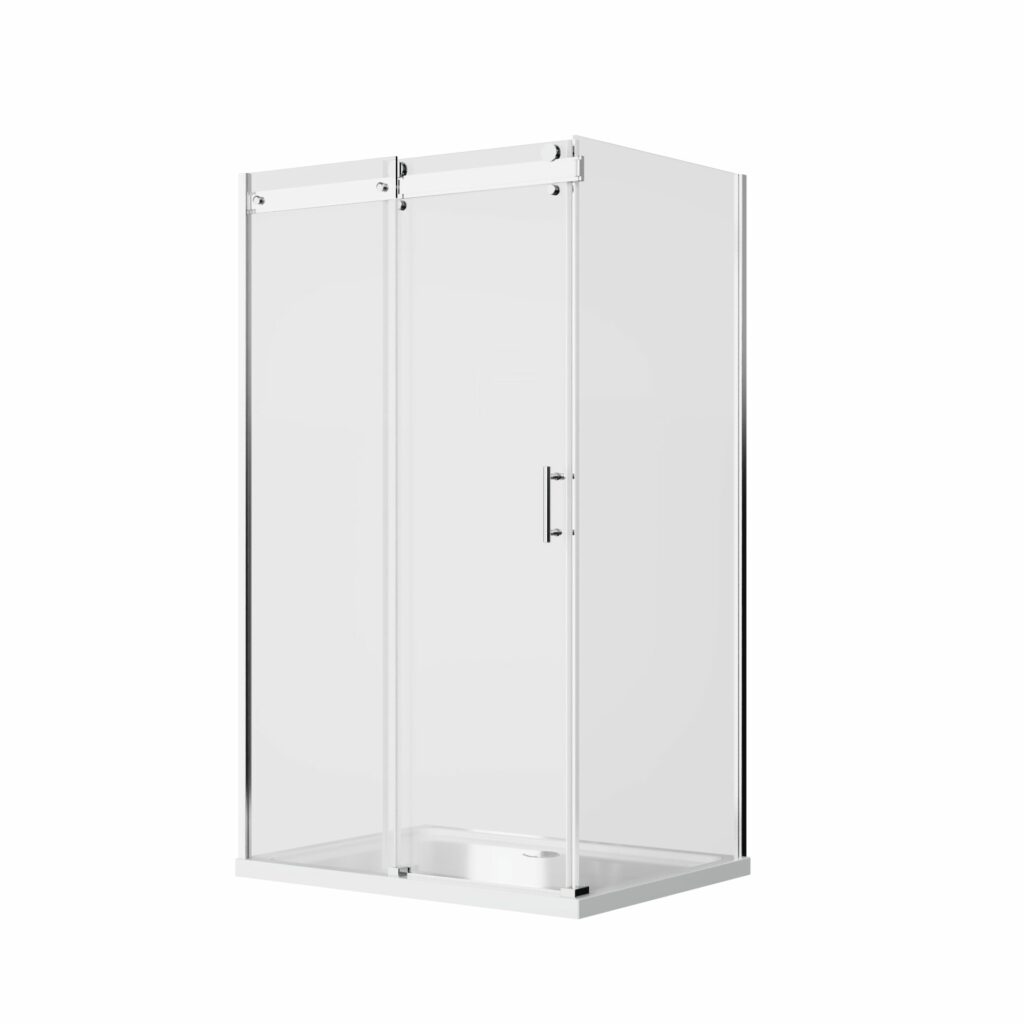 Porte de douche coulissante avec paroi fixe 8 mm - REF S730-120 CHROME• Dimensions: 90X120X195 CM • Avec verre trempé de 8 mm d’épaisseur • Anti calcaire • Profilés en chrome
