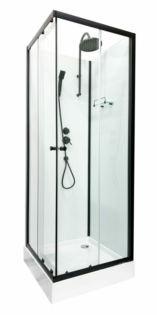 Cabine de douche noire carré 90X90 - REF FRCR07-900• Dimensions: 90X90X215 CM • Avec douche de tête, douchette à main, flexible de douche et mitigeur mécanique